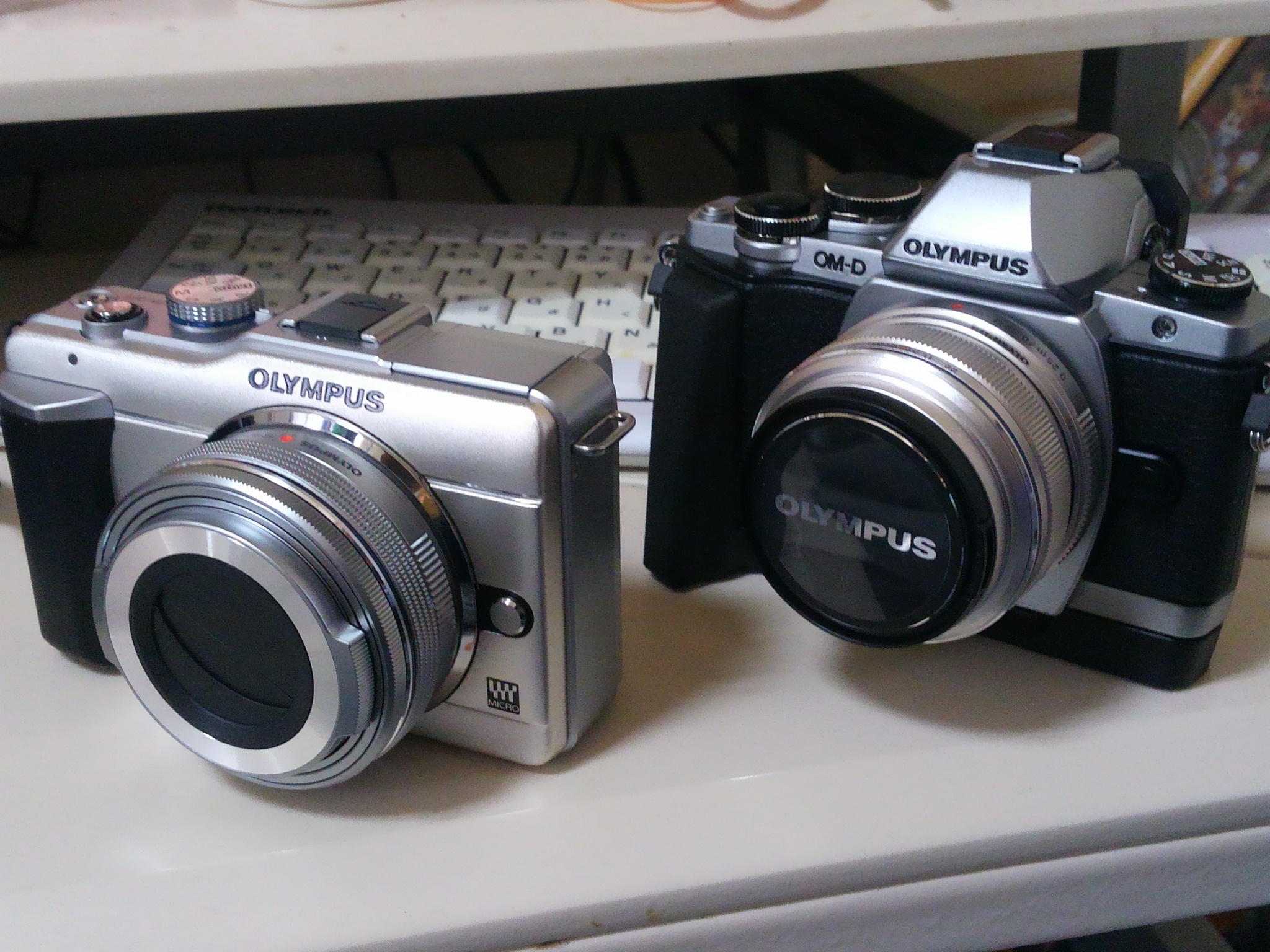 E-M5は、ファームアップで機能が追加されたし、バッテリーグリップもあるし、強力5軸手振れ補正、防塵防滴と魅力的なものの、、、フラッシュ内蔵してないってのがね・・・