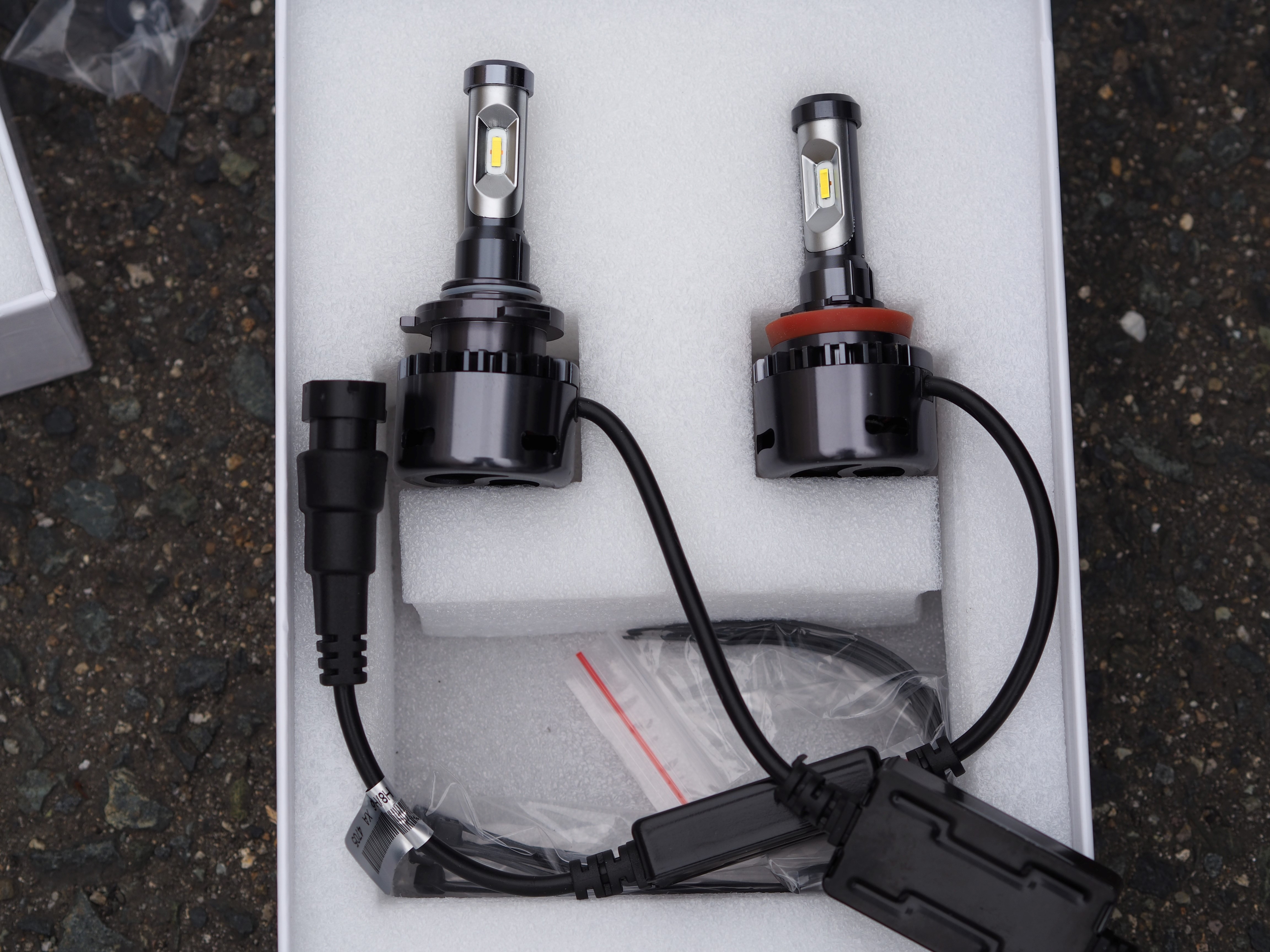 左側がハイビーム用(HB3)で、右側がロービーム用(H11)。